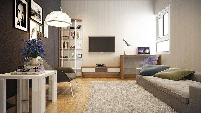 Mẫu thiết kế nội thất phòng khách chung cư đẹp với gỗ công nghiệp